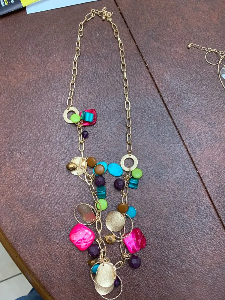 PRETTY WOMEN NECKLACE GOLD COLOR PLATING COLORFUL BEAD ROUND DISC CHARM LONG NECKLACE FOR WOMEN GIRL