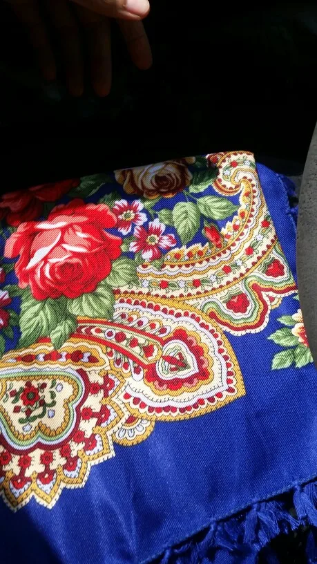 Print Scarf Shawl Russian Pattern Tassel Square Scarf Female Winter Cotton Aztec Hijab Wrap Head Scarf 90*90cm 130g
