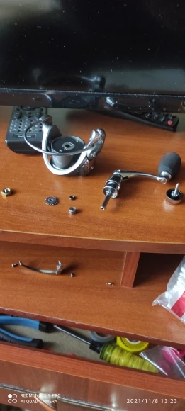 Very good reel for its price. Body is made of metal. Rotor is plastic. Main gear with total 5+1 BBs (2+1 rotor assy, 2 handle assy, 1 in secondary gear for spool movement). Additionally 2 BBs on spool and 2 on line roller. All BBs are closed type. I guess some more BBs on knob. Metal body is covered with 2 plastic covers. I suggest disadvantage is bad water/dust/sand protection of main body (metal body has vents, plastic is not watertight). So if you put the reel to water/sand, you'll have to clean it afterwards.