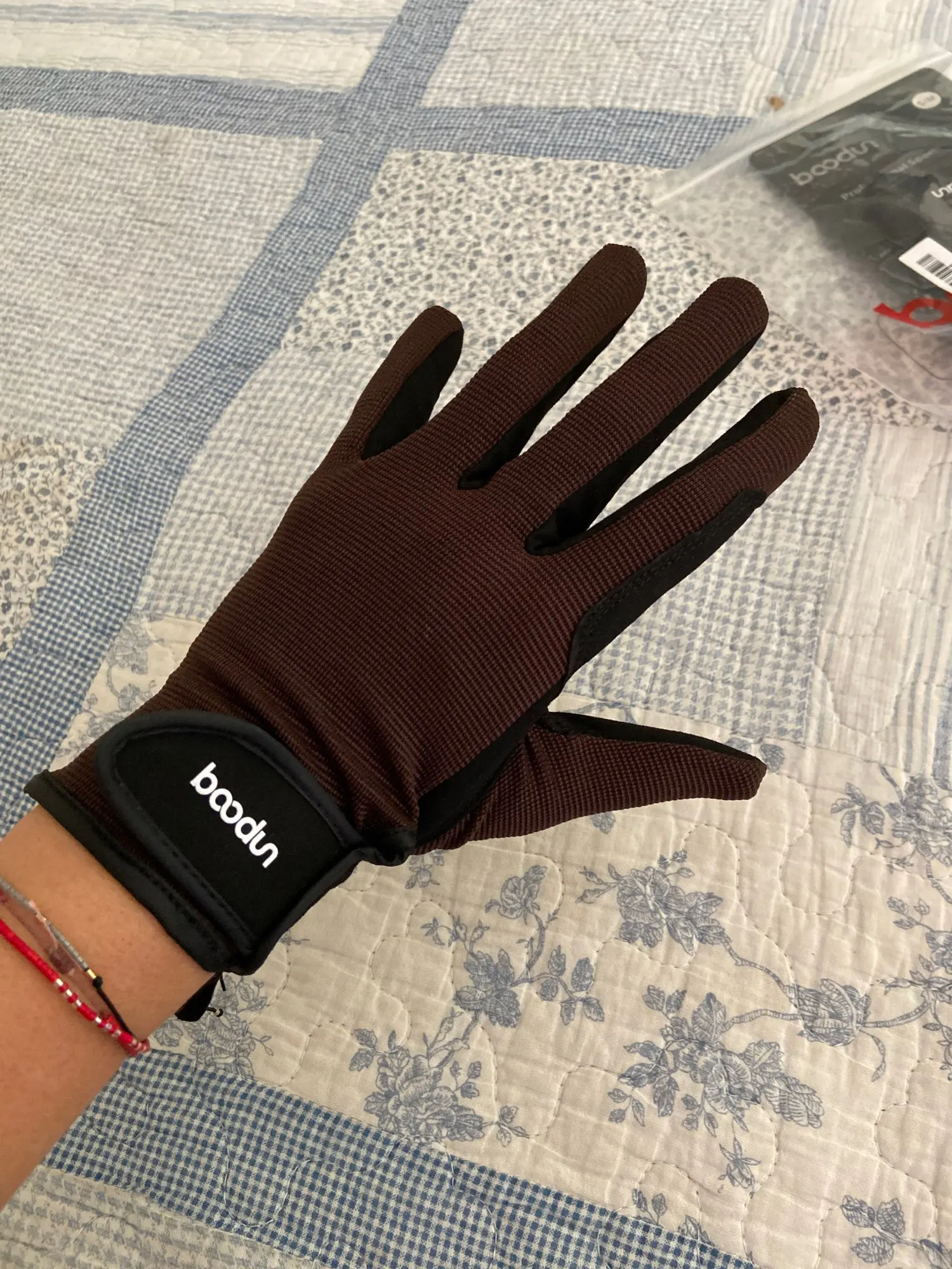 Really fast delivery. Gloves has nice material. Size (S) is perfect on my small hands.