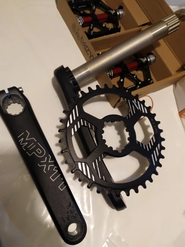 Item delivered new and good condition. The Crank works well solid. It's kinda hybrid of Shimano and SRAM design. The Chainring is SRAM style and the crank attachment, spindle and BB is Shimano style. However, the BB that they supply is lower quality. The bearing is not smooth. Better to install with a Shimano BB. so my advice is to buy just the crank and chainring but not the BB. Weight of crankset is 790Grams and BB is 115Grams. Recommended Seller.