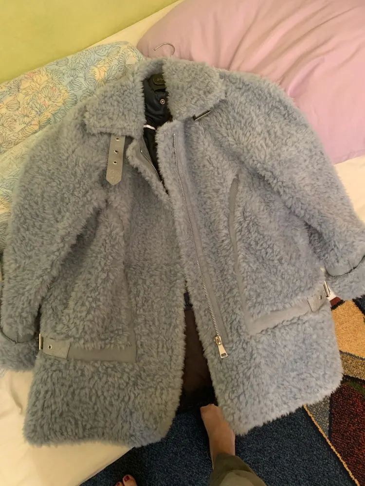 PUDI women winter real wool fur coat jacket female girl sheep shearing coats lady Long jacket over size parkas CT025