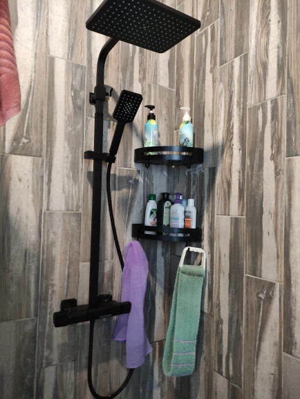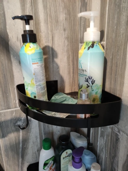 Punch-Free Black Aluminum Shower Rack Shampoo Holder For Wall Corner Organizer Kitchen Bathroom Accessories 00BS0101 Shelves