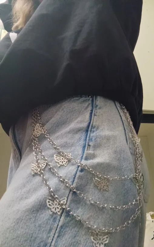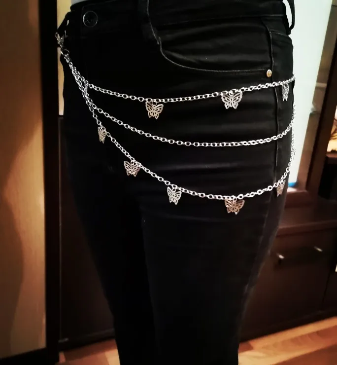 Punk Street Butterfly Belt Waist Chain Male Women Pants Chain Multi Layer HipHop Hook Trousers Keychain Jewelry