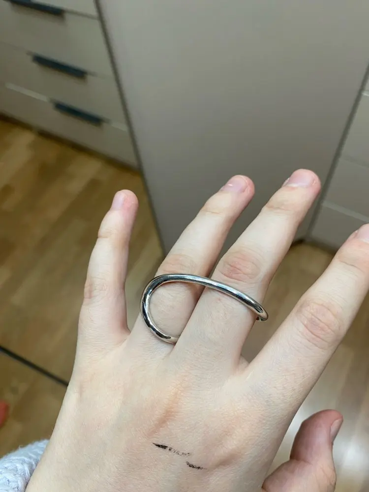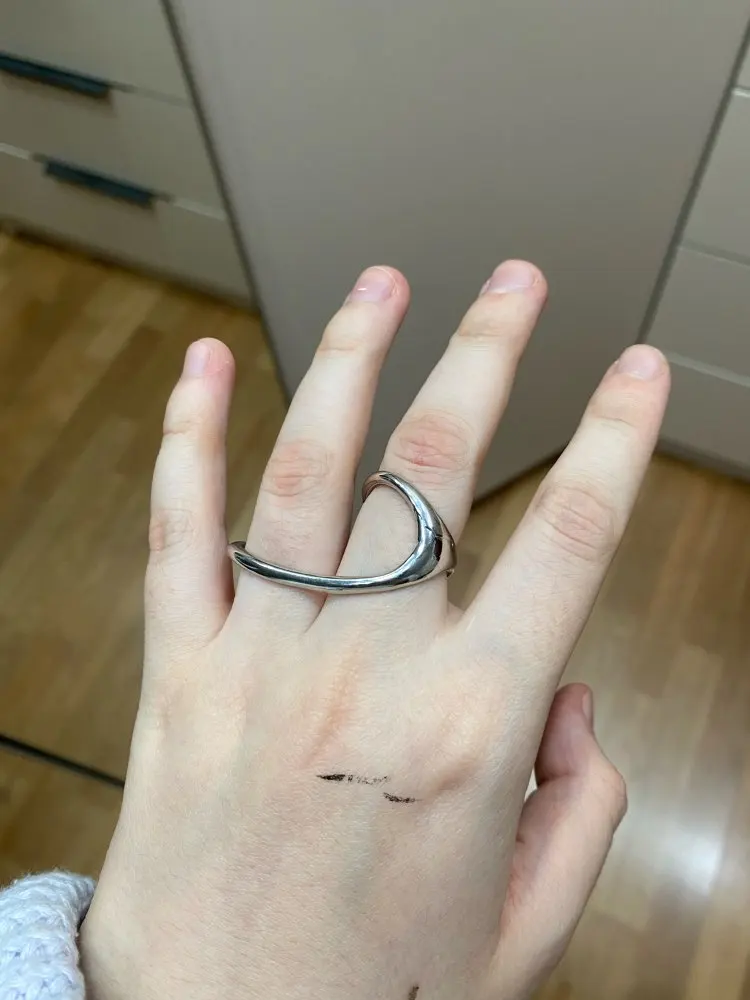Punk Two-Finger Irregular Geometric Ring New Design Geometric Smooth Rings Silver Color Hip Hop Open Ring Women Jewelry Gift