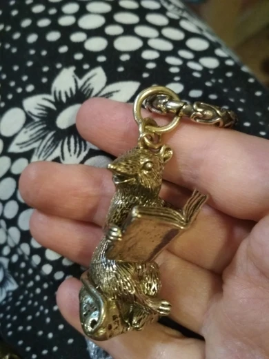 Pure Brass Zodiac Reading Rat Keychain Pendants Trinket Vintage Copper Couple Mouse Car Key Chains Hanging Cartoon Mice Keyrings