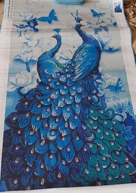 Hi there, l recieved beautiful peacocks diy diamond embroidery,,,a super size, will look gorgous when finished..thank you so much Jo