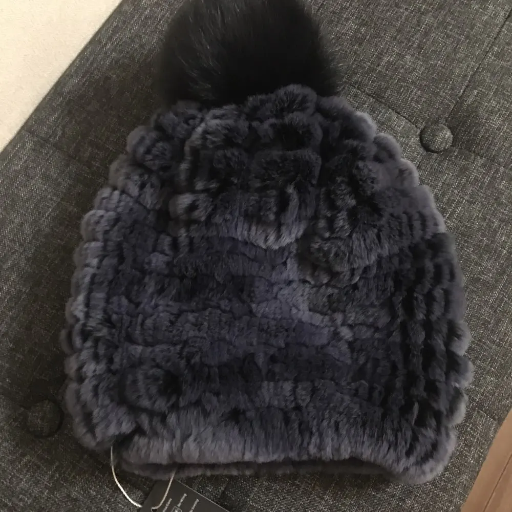 rabbit fur pompom hat women's beanies winter natural fur warm knitted caps for girls female fashionable elastic ladies hats