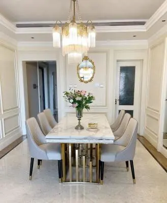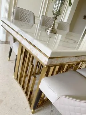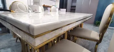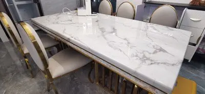 Rama Dymasty stainless steel Dining Room Set Home Furniture modern marble dining table and 8 chairs,rectangle table