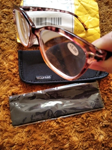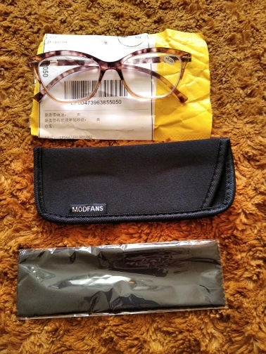 Exactly like picture with the cloth and case. I love these. It really bothers my eyes to wear the dark rim glasses and these clear ones are just perfect. Made better than some other out on market. They have the redactable temples for on and off . I have not broke a pair of these as of yet. Other do at the bridge. I recommend these 100%. Very happy. The P D Is perfect also. Looking threw the correct prescription and no wavy-ness.