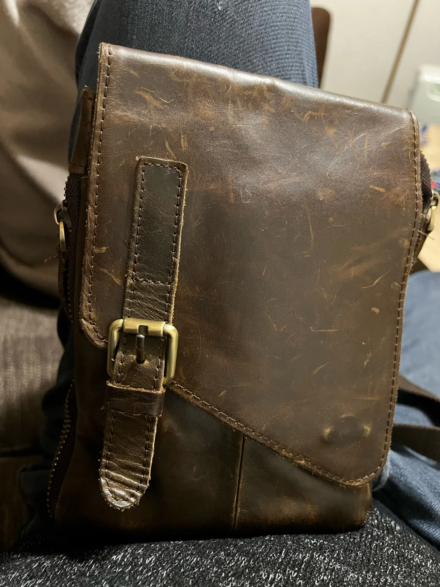 Hello Hello. This leather bag came to me. It's well done, it looks great. Its size fits. Thank you very much. Everything good!