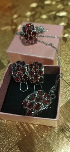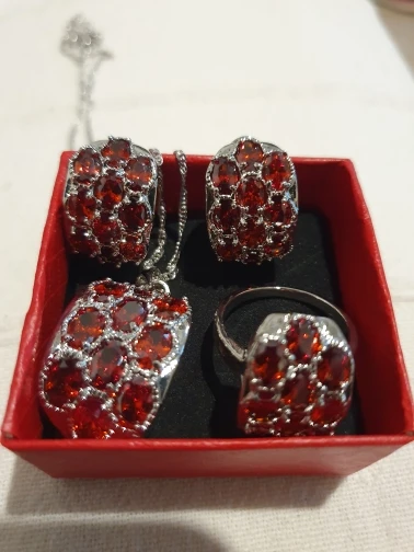 Red Garnet Silver Jewelry Sets Earrings Pendant Ring For Women Size 5 / 6 / 7 / 8 / 9 / 10 S0011