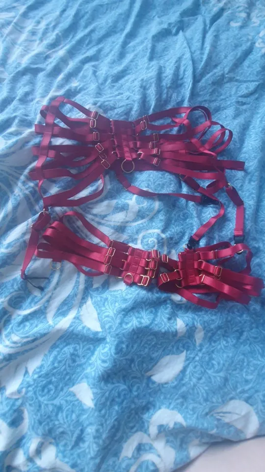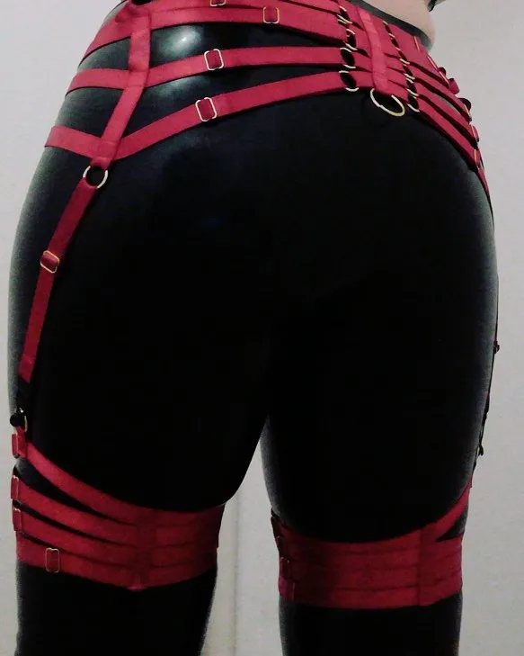 Red Garters Belt Body Harness BDSM Bondage Stockings Suspenders belt Elastic adjust Strap Lingerie Goth Fetish dance wear