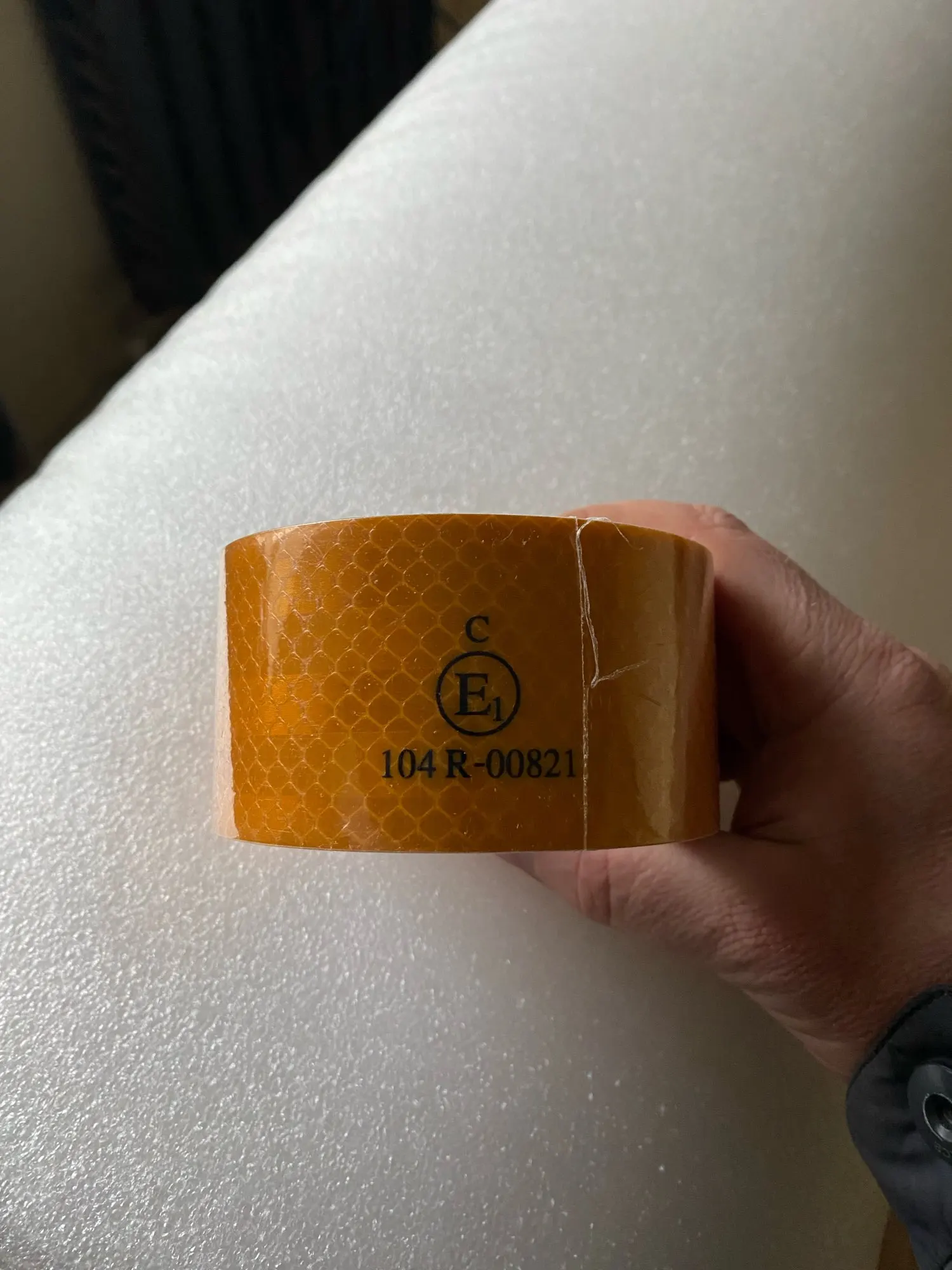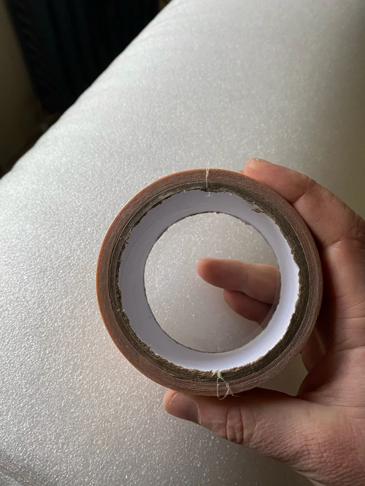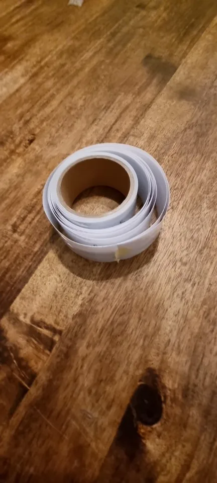 Tape has writing every 12 inches or so, doesn't peel off that I can see, so long strips are ruined, or I have to cut 2 inches out of tape every foot.