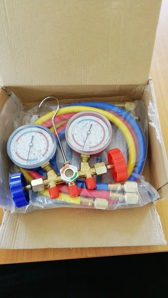 Refrigerant Manifold Gauge Set Air Conditioning Tool with Hose and Hook for R12 R22 R404A R134A Air Condition Refrigeration Tool