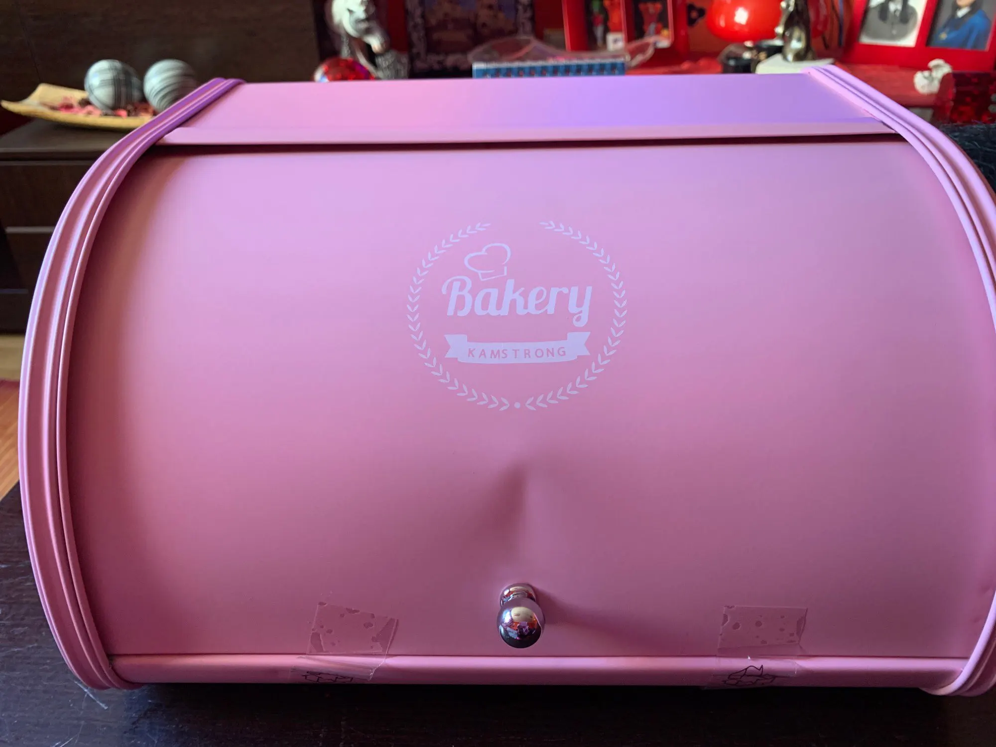 Retro Kitchen Storage Box Pastry Decorative Roll Top Non Slip Base Bread Box Cake Home Iron Rustproof Pink Home Storage Box A4