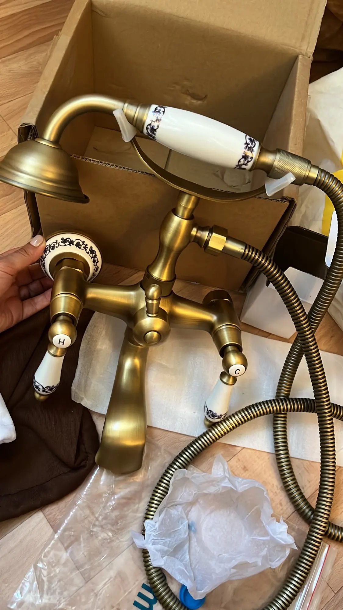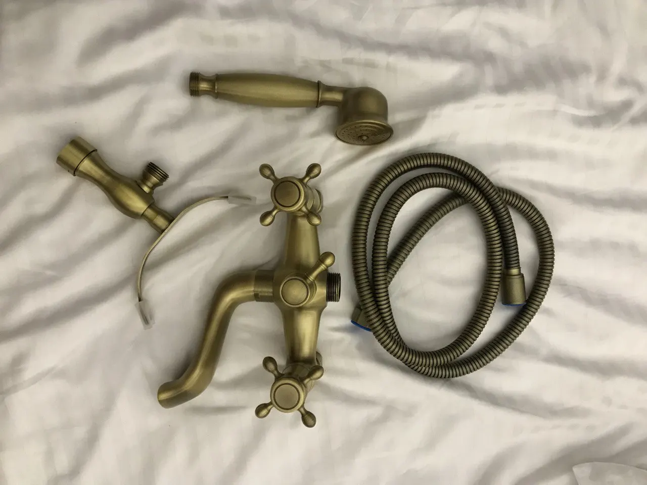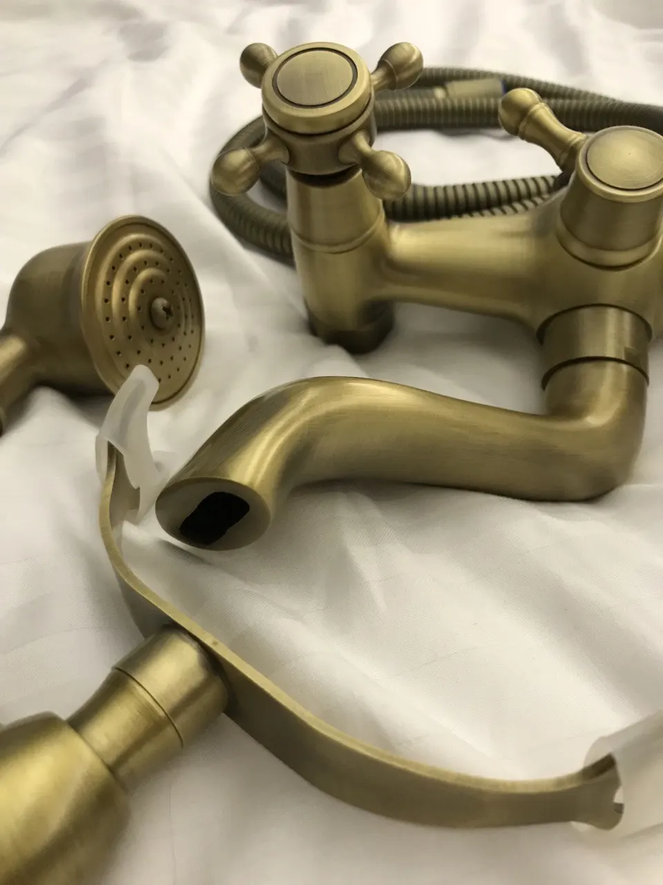 Retro Style Brass Bath Shower Faucet Set Dual Knobs Wall Mounted Bathtub Mixers with Handshower Swive Tub Spout