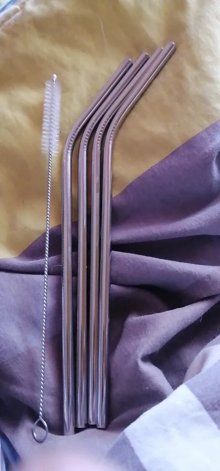 Reusable Metal Drinking Straws 304 Stainless Steel Sturdy Bent Straight Drinking Straw with Cleaning Brush Bar Party Accessory
