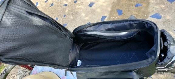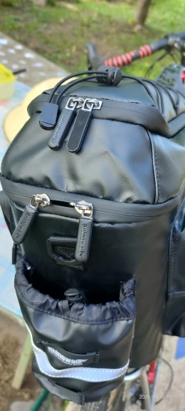 The bag size is optimal + inner and exterior pockets + rain coat.