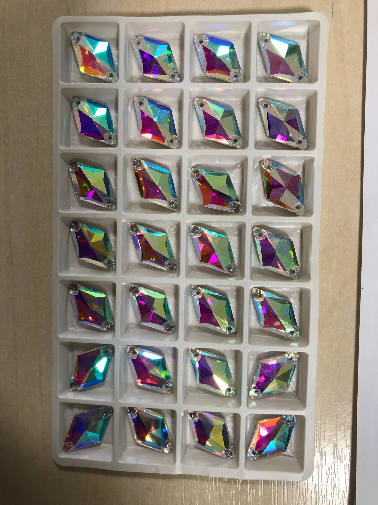 Rhombus Crystal Glass Sew On Rhinestones Flatback Stones With Holes Crystal Glass Sewing Rhinestones For Wedding Dress B2706