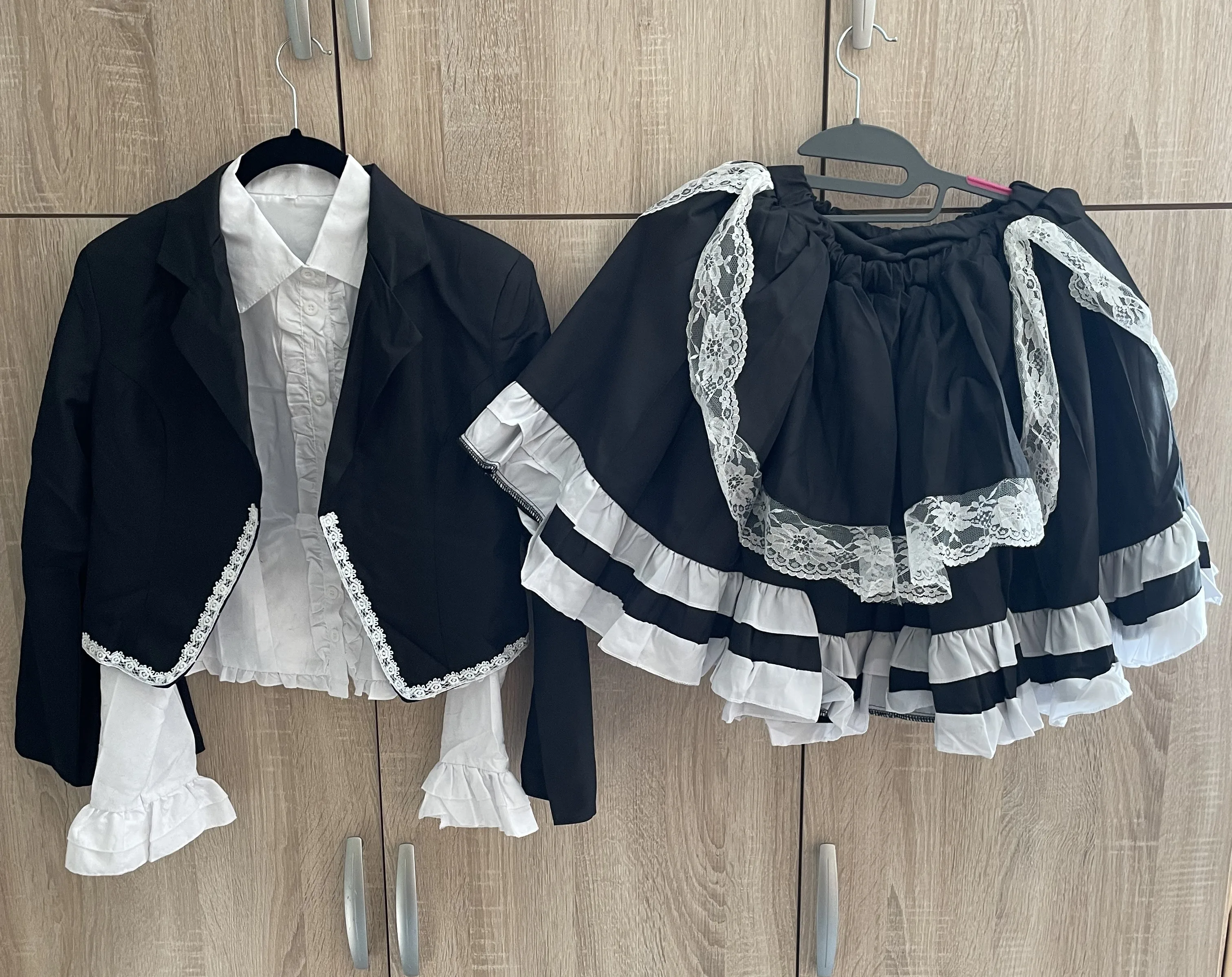 looked exactly like the picture and came really fast but the only thing is on the sleeves it was black ribbon instead of white but it did come with a white ribbon and was easy to fix would definitely recommend