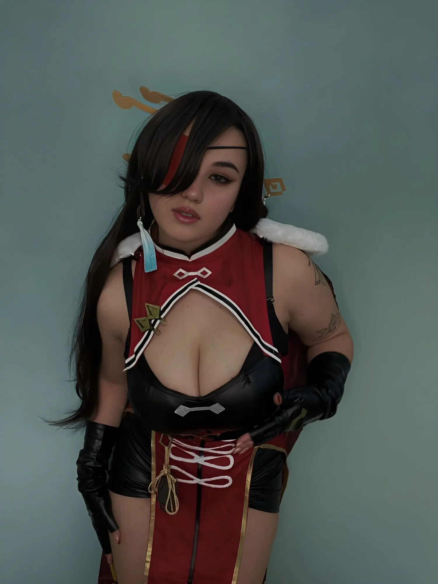 It looks amazing. I love the quality and the details. Sadly my vision is upside down, the gold ribbon started peeling off as soon as I tried it and one of the hair pieces were stained. The stockings are too tight so I barely get them over my knee. Took 2 months to arrive to Norway