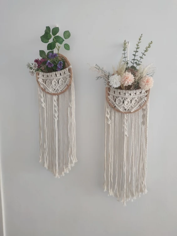 Round Flower Pot Tapestry Hand-woven Macrame Wall Hanging Art Woven Bohemian Crafts For Room Decoration Dedroom Livingroom