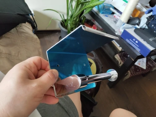 After good communication with the supplier, it turned out that the die-cut product number contained a piece of protective film. at first this looked like a damage but it is not. it is really stainless steel! TOP