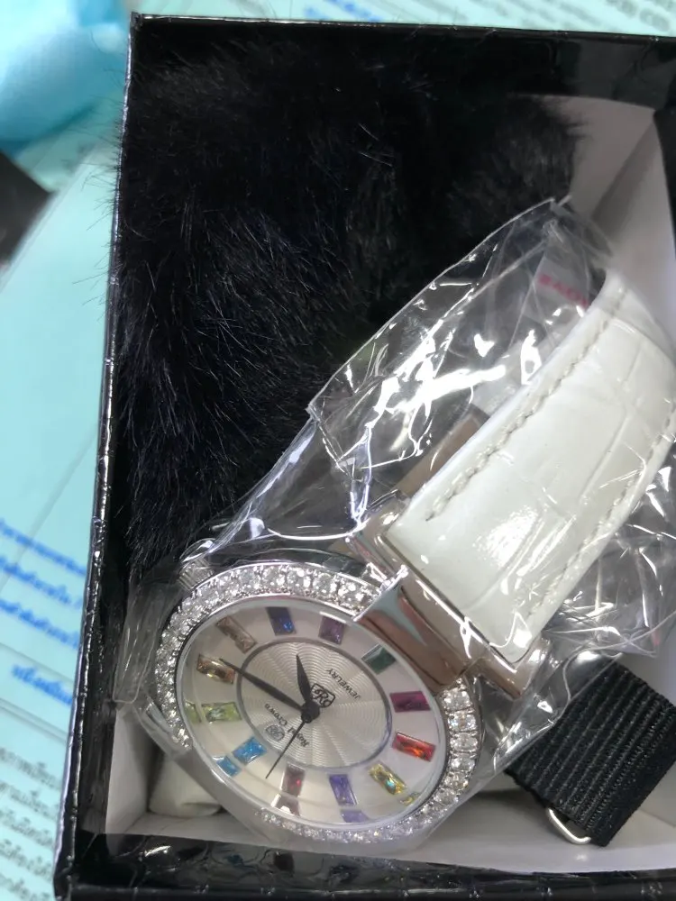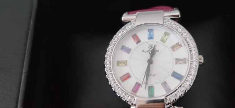 Fast delivery in a solid box and thanks for the small gift & extra wrist belt (2 extra pcs crystals). However, with all respect, the watch is a little too expensive for its quality/look in my opinion.