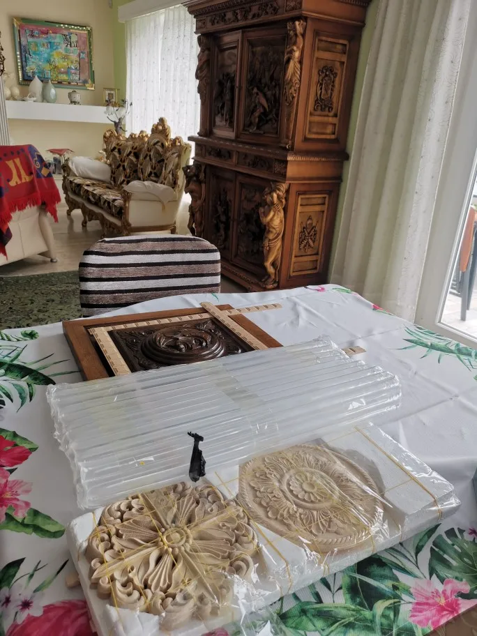 RUNBAZEF Wood Carving Solid Furniture Edge Border Square Line Carved Home Decor Decoration Accessories Craft Figurine Ornaments