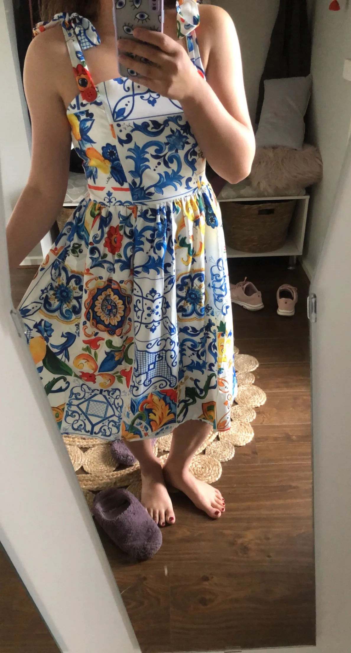 Runway Women Summer Dress Bow Spaghetti Strap Backless Blue and White Porcelain Floral Print Mini Dress Vestido Mujer Verano