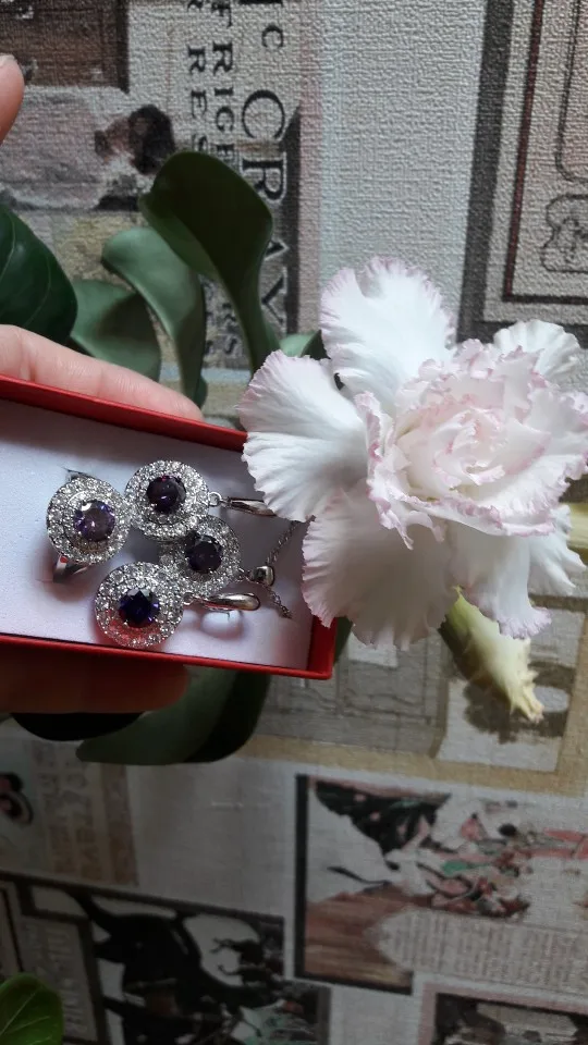 Russian Style Jewelry Sets Natural Purple Crystals Pendants Necklace Earring Ring Bracelet for Women Luxury Party Jewelry