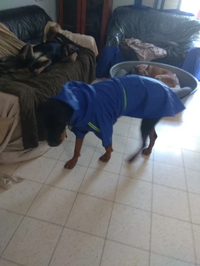 Excellent quality raincoat! I ordered size 5xl for my 85 pound Malamute who is like a sponge in the rain. It fits him perfectly.