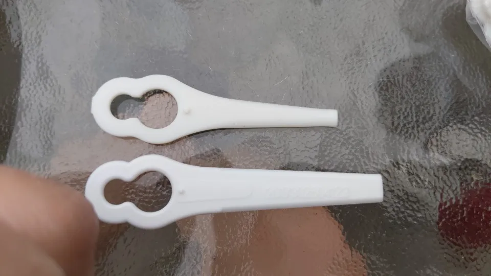 Dont buy China blades, they are rubbish. These break after about 3 minutes use. If you use on grass only, then they last longer, but typically, you may be doing edges and hitting small stones and these blades either come off, or break like the red or green ones sold elsewhere on Aliexpress. Our blades from Bunnings or Mitre 10 last more than 20 minutes even in hard work conditions.