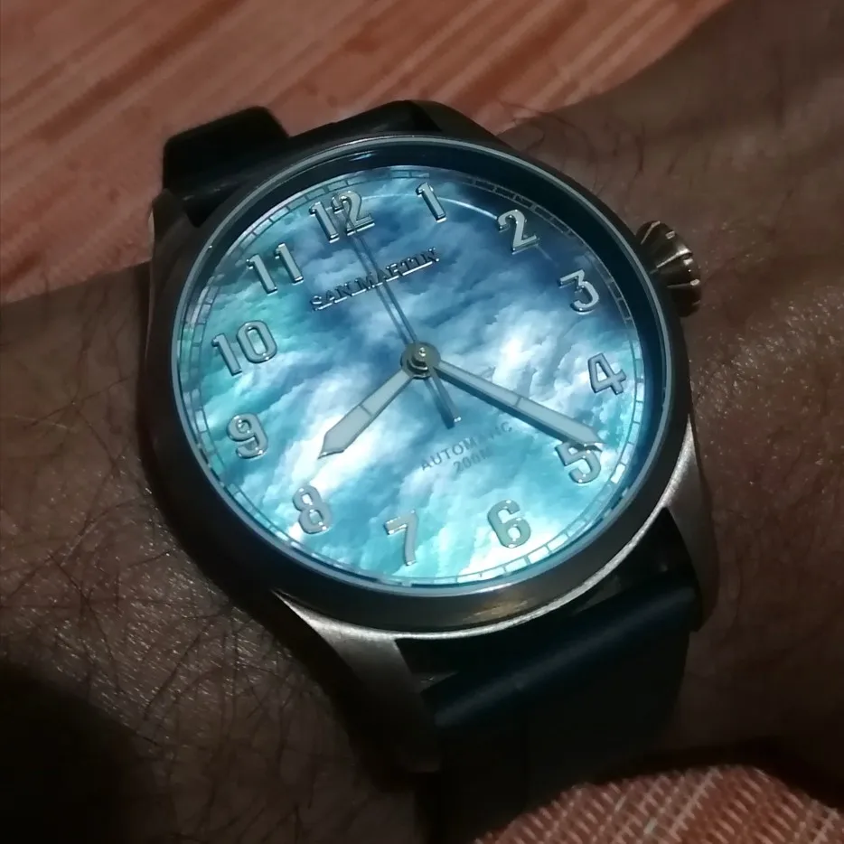 I have bought many watches over the years. Some very expensive; some not so much. This San Martin is my most most attractive and, I feel, the best value of all them. For many years I have looked at 'pilot' style watches - including the very popular IWC models - but their look was never quite what i wanted. This San Martin for me presents the complete pilot look. It is plainly simple with its features coming together balanced, in correct proportions that work to offer both an elegant dress or sporty timepiece. The 'as received' quality is excellent with its manufacture build and finishing paying complement to the pleasant style of the design. Only time will tell how reliable it is, but for now i note that it comes with a highly rated automatic mechanism and durable materials. This is a beautiful watch - the best of my collection. I will likely be back to buy another San Martin.