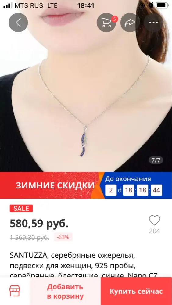 SANTUZZA Silver Necklaces Pendants For Women 925 Sterling Silver Shiny Blue Nano CZ Pendant fit for Necklace Fashion Jewelry