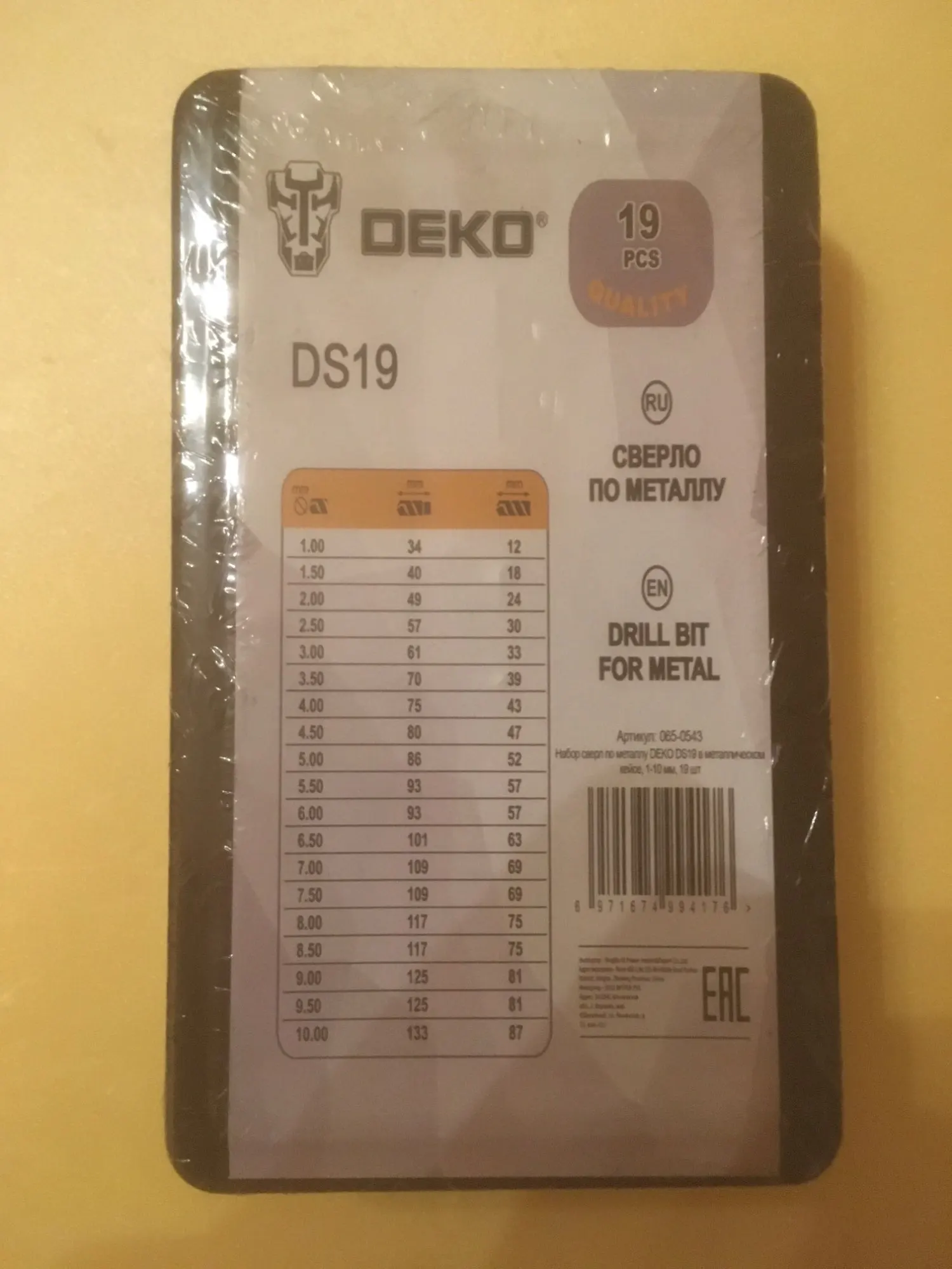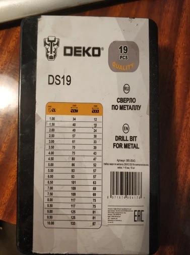 Set of drill bits for metal Deko DS19 in metal case, 1-10mm, 19 PCs