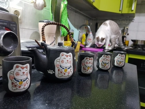 Set of Japanese Ceramic Cute Cat Tea Pot Tea Cup Water Cup Maneki Neko Design Porcelain Kettle Teaware Set (4 cups+1 teapot)