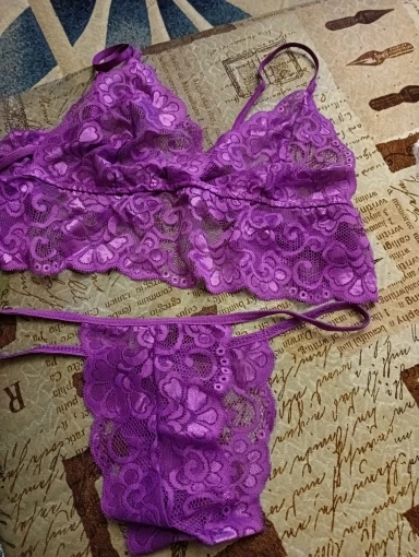 Sexy Lingerie Set Women Transparent Lace Babydoll Open Bra Set Floral Purple G-String Underwear Set Nightwear Bra And Panty Sets
