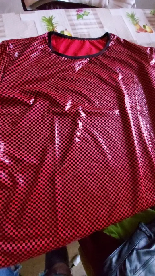 Sexy Men Glossy Skinny T-Shirt High Quality Top Club Wear O Neck Short Sleeve Pullover Slim Fit Patent Leather T Shirt Male