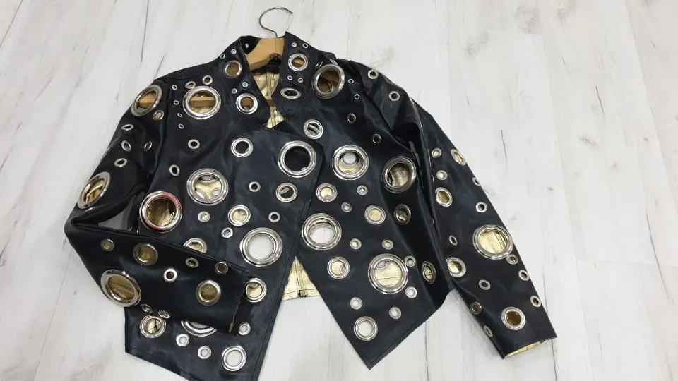 Sexy women's 2022 winter new Korean fashion personality wild stand collar hollow light PU black long-sleeved women's jacket