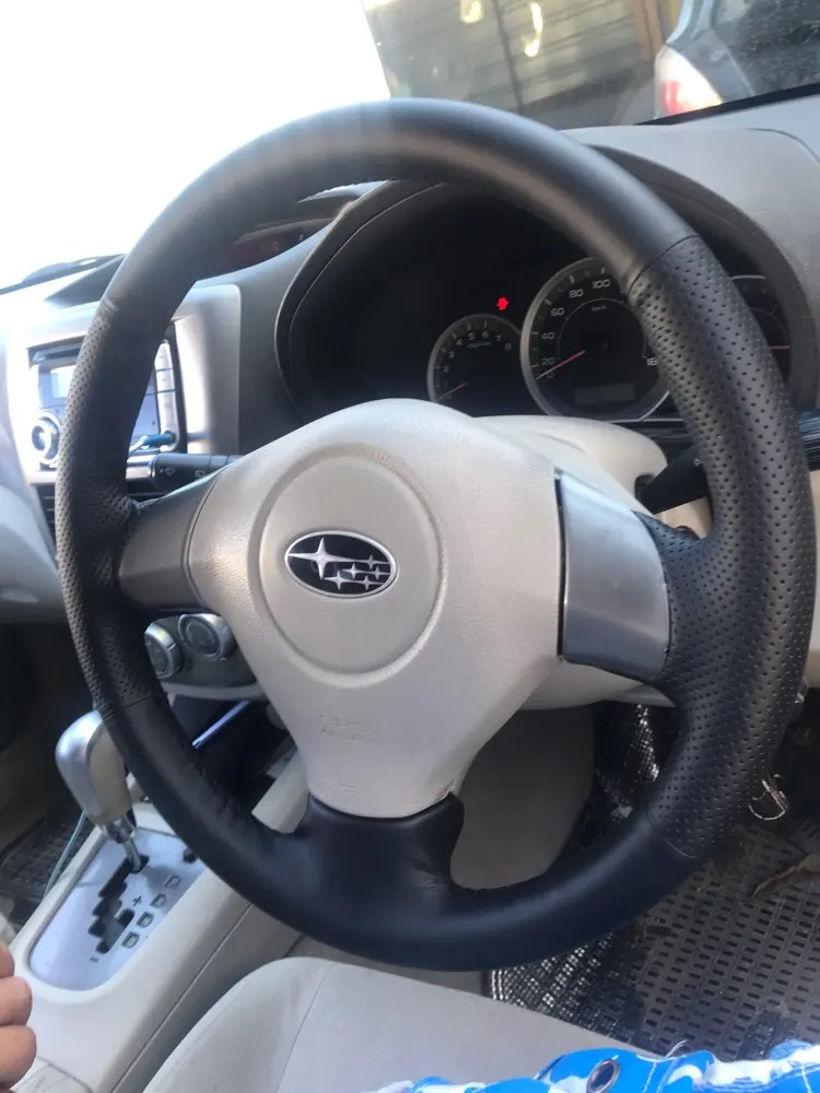 Shining wheat Black Leather Steering Wheel Cover for Subaru Forester 2008-2012 Impreza 2008-2011 Legacy 2008-2010 Exiga 2