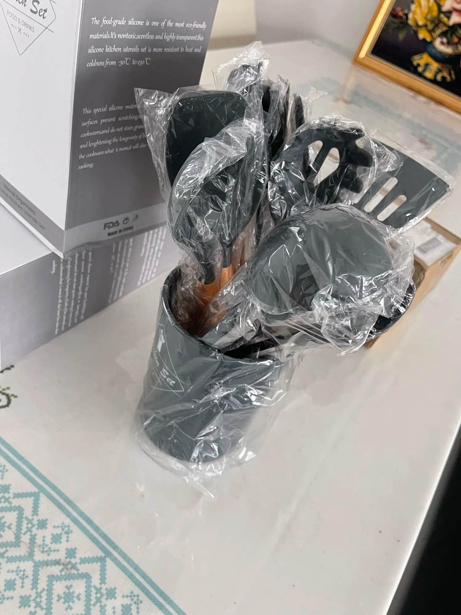 Everything fine, as described by seller, 2 day delivery. Silicone heat resistant, soft on edges, wooden handles smooth. Recommended