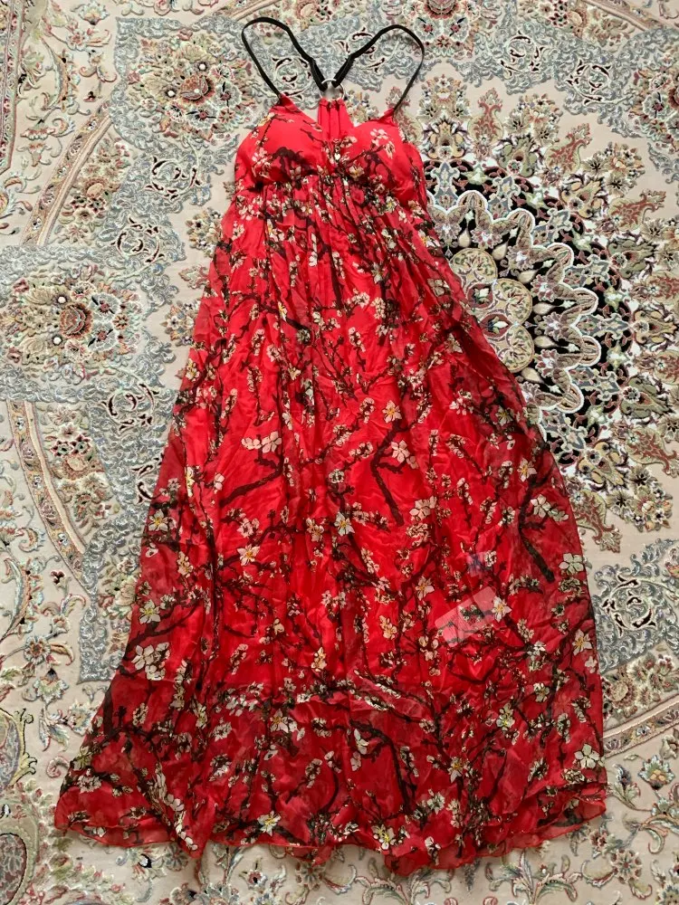 Silk Dress Women Elegant Beach Long Red Party dresses Women Printed High Quality Clothing Free Shipping HOT Selling