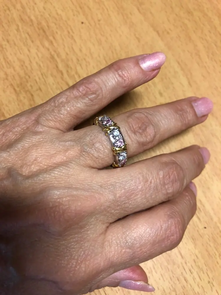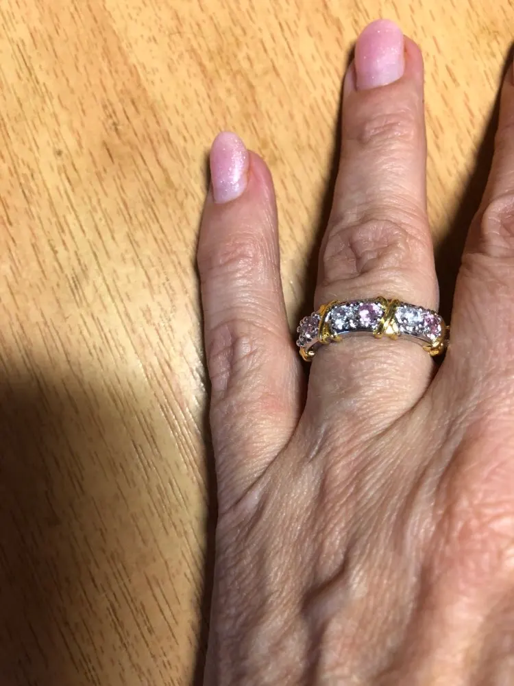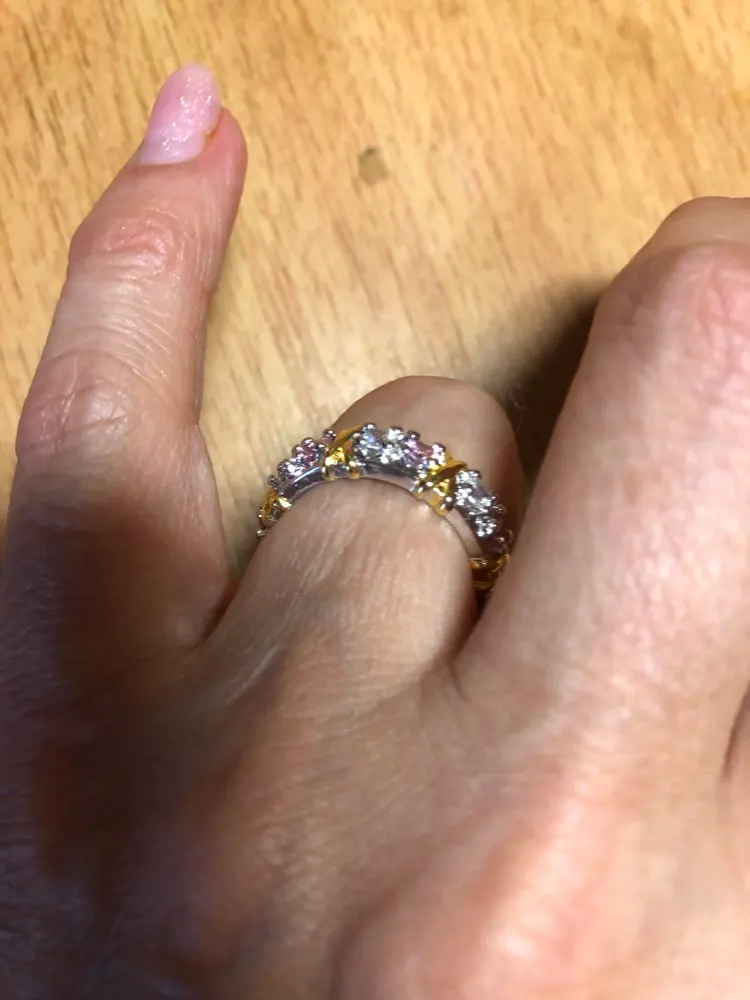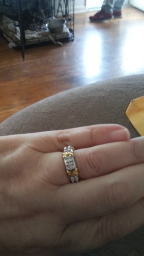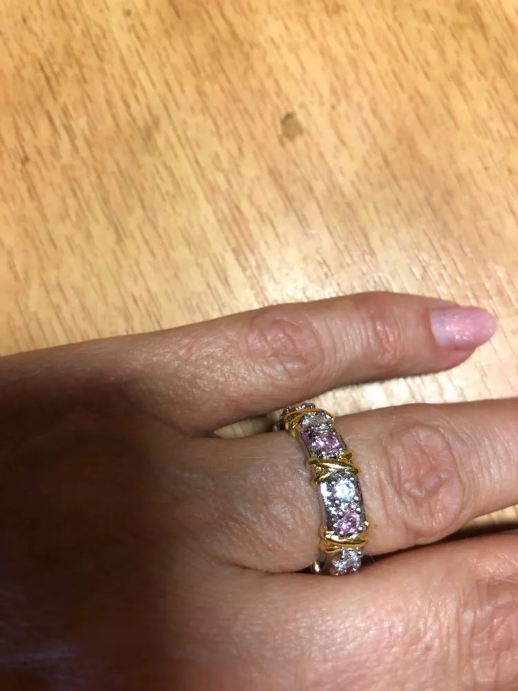 Have gotten so many compliments on this ring. it is beautiful, looks great on my hand and is a perfect wedding band. Wonderful value, looks real, would never know its cubic zirconia. Highly recommend.