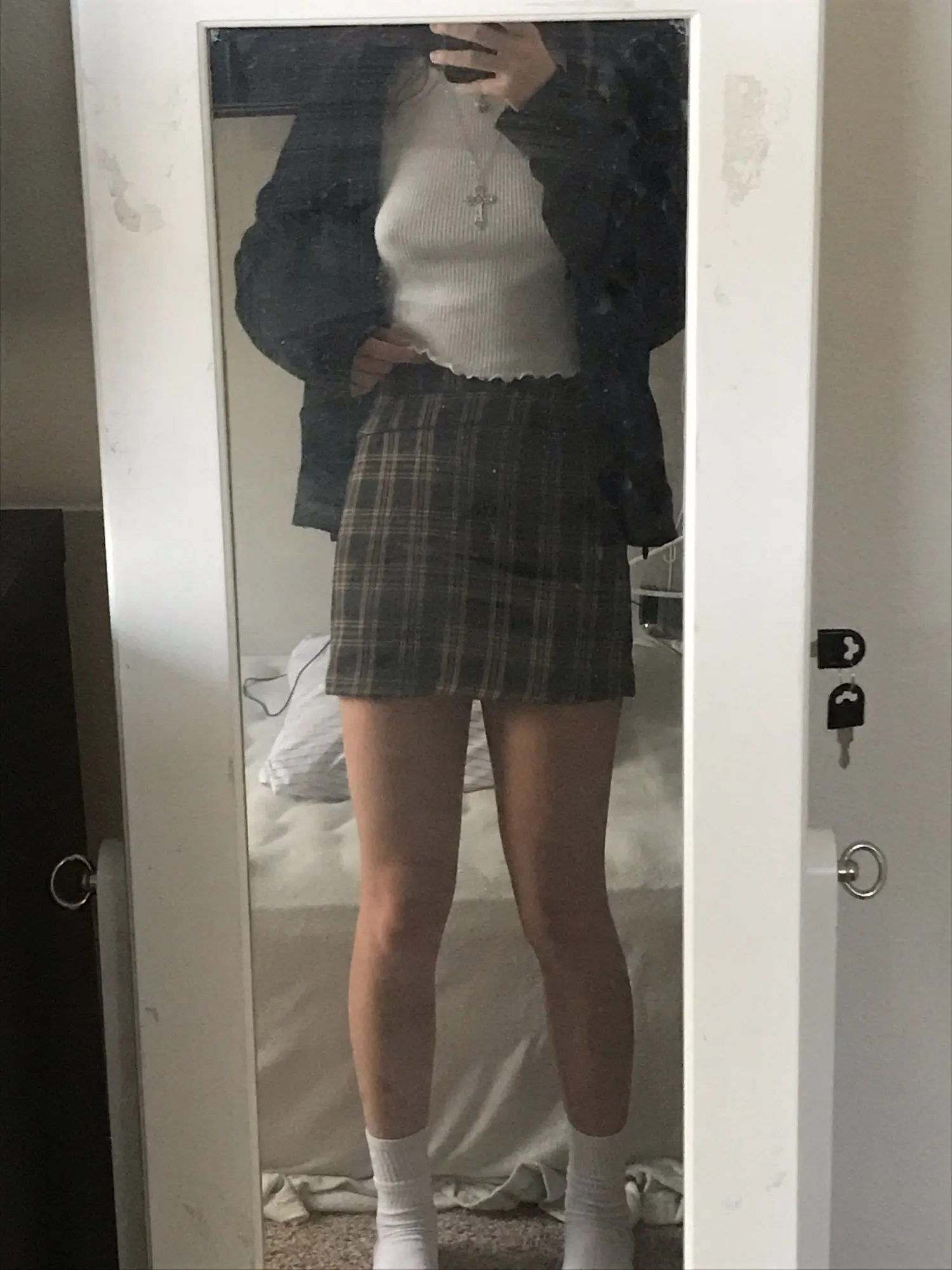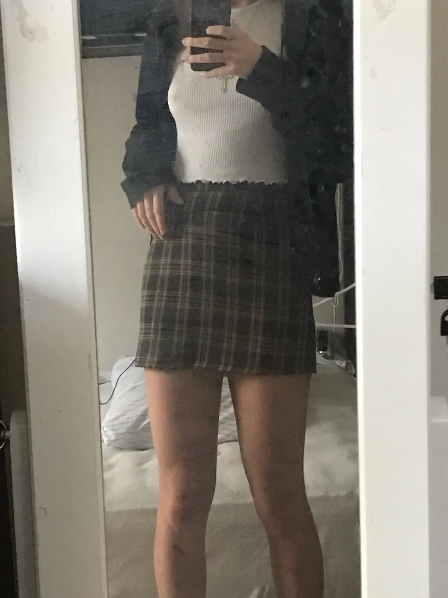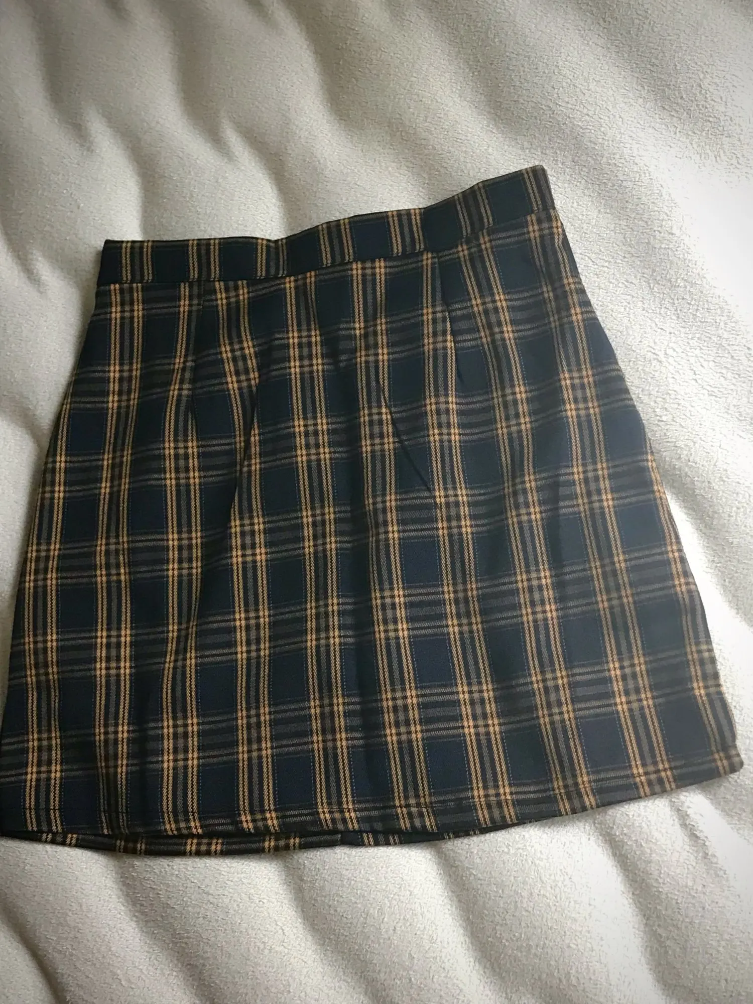 Tight around the waist bc it is not at all stretchy. A bit short too and I cannot bend over in it, and im only 5’4. Made poorly because there were a lot of loose threads at the skirt’s bottom hem.