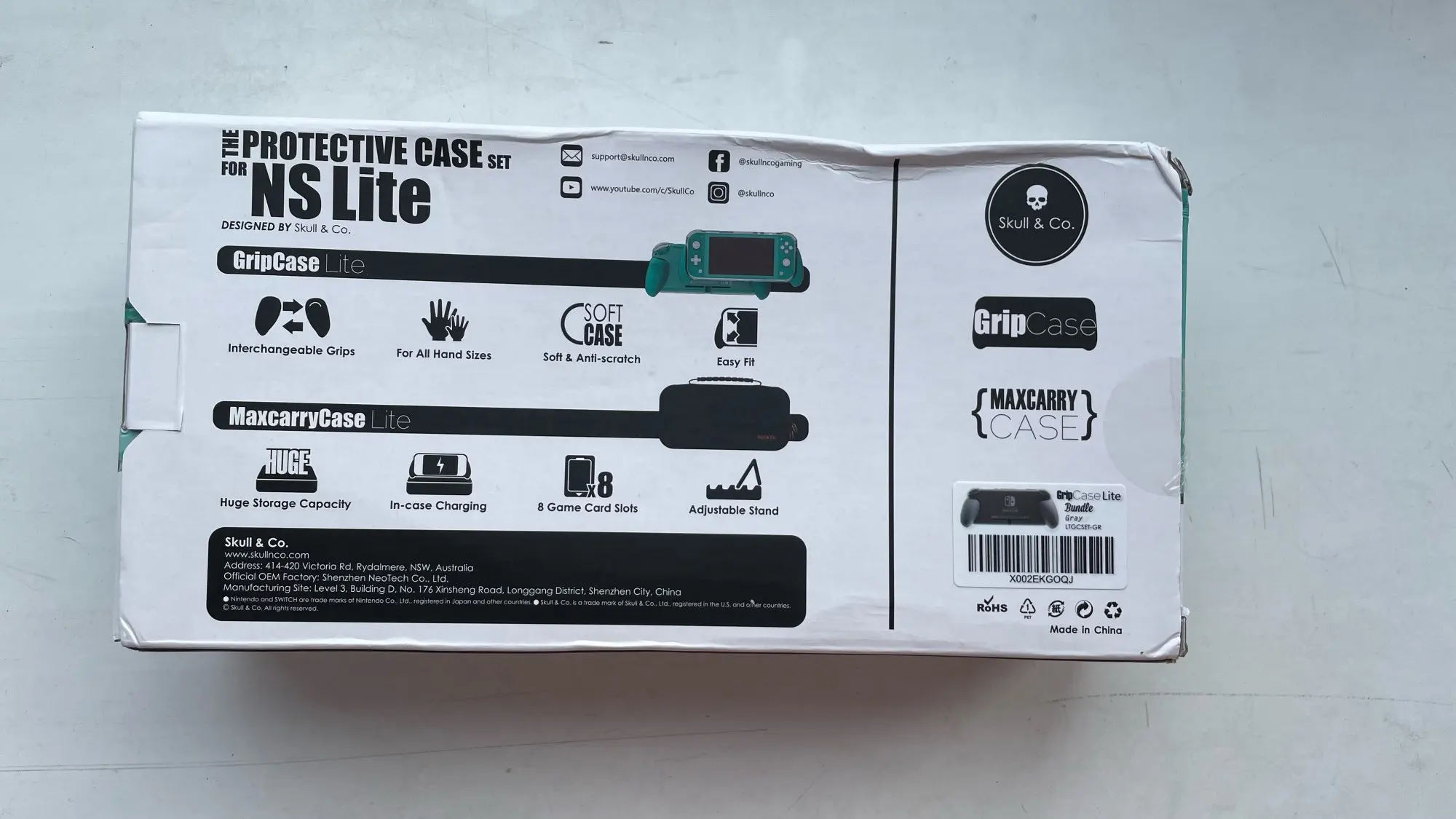 Skull & Co. GripCase Lite with Replaceable Grips MaxCarry Case Lite Storage Bag Cover Shell for Nintendo Switch Lite
