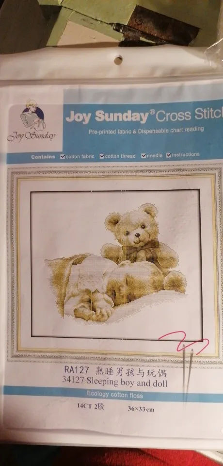 Sleeping boy and doll cross stitch kit aida 14ct 11ct count printed canvas stitches embroidery DIY handmade needlework