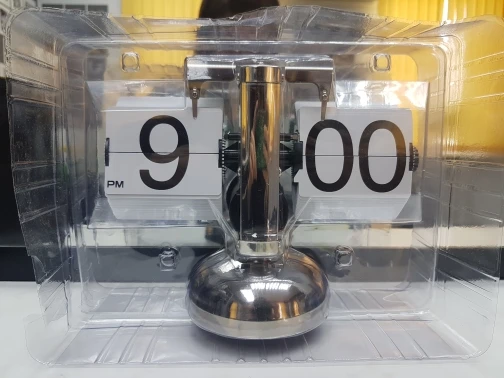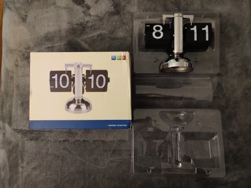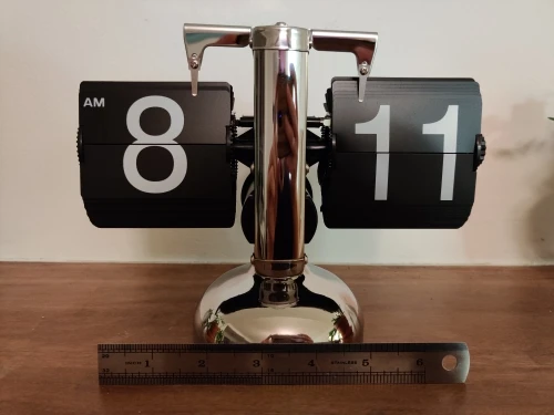 Small Scale Table Clock Retro Flip Clock Stainless Steel Flip Over Internal Gear Operated Quartz Desk Clock Black/White