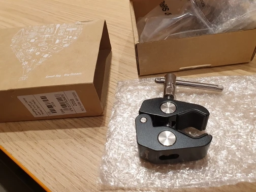 Ordered on 1May2020, received 3 Jul. I was hoping the clamp won't be too bulky and I'm pleasantly surprised the size is what I was hoping it would be. It goes well with my 11" articulating arm also from SmallRig (https://www.aliexpress.com/item/32850461084.html?spm=a2g0s.9042311.0.0.7e884c4dRUlJn1) and clamps steadily on my headboard. I would have to say though that this time around, the delivery was very slow but not the seller's fault. They were responsive when I asked about the status of my order and easy to deal with. My mini entertainment setup on headboard: SmallRig clamp and articulating arm Ulanzi aluminum tablet mount iPad Air 2